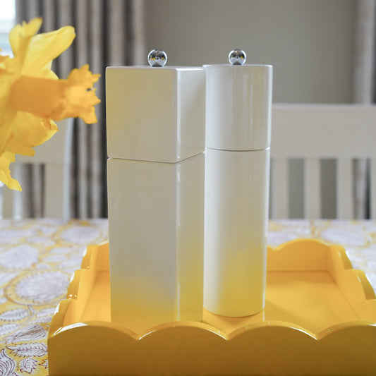 Sleek and Stylish our column and pillar salt & pepper mills are available 4 colours of hand polished lacquer.