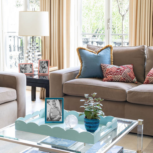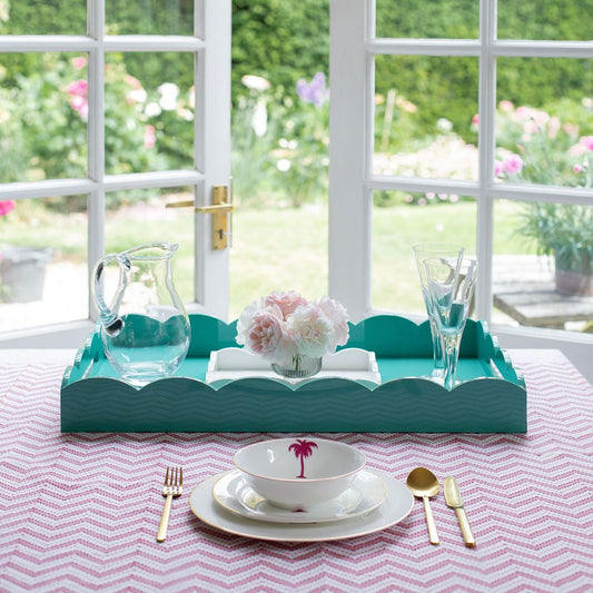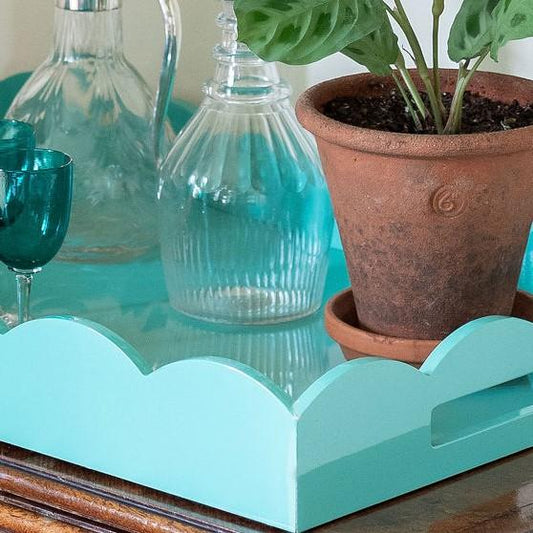 Our Lacquered Scalloped trays are our piece de resistance! We completely love them, Available in both our Serving Tray Size and Larger Ottoman they are suitable for all manner of uses from display to serving.