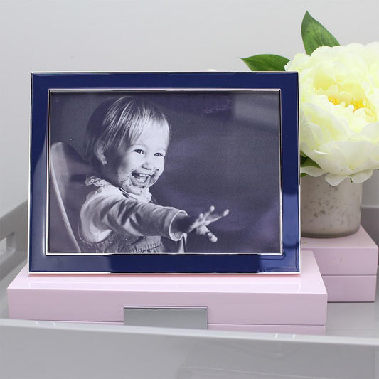 Navy Blue Enamel & Silver Frame