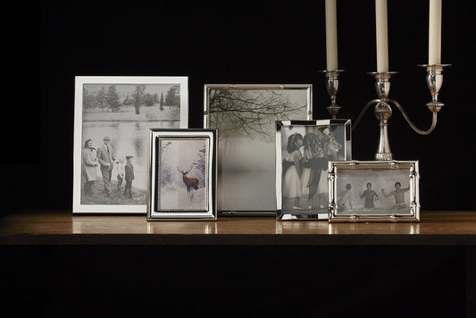 Suitable for any home, these richly finished silver plated designs are timeless. Finished in a clear lacquer avoids the need to polish these elegant frames.