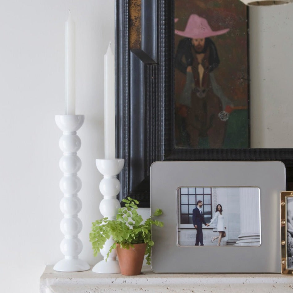 An Addison Ross exclusive design, our extra tall white lacquered bobbin shaped candlestick is made from solid Rubber wood fully FSC certified, finished with 8 coats of high gloss lacquer hand polished between each coat. Suitable for standard sized dinner candles.