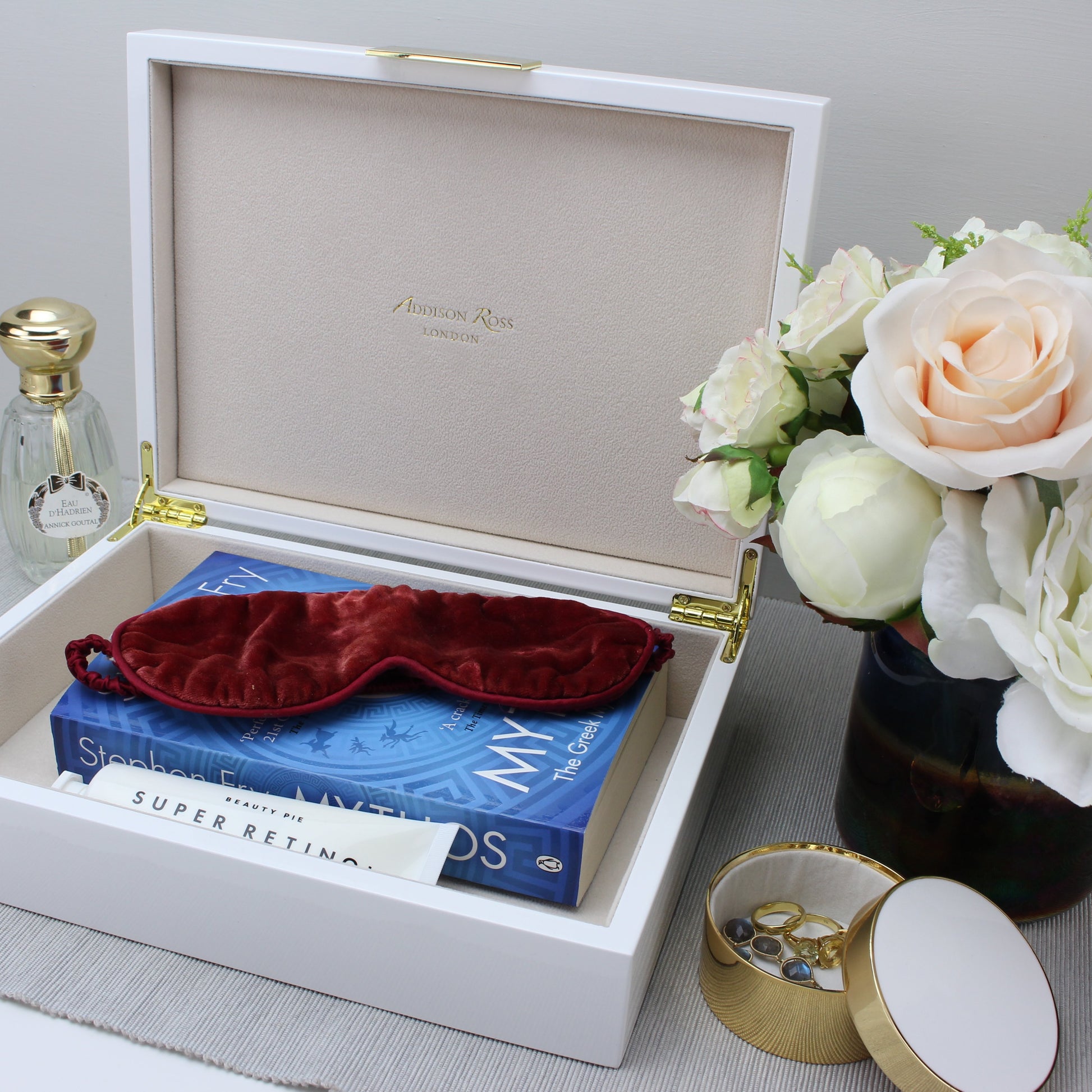 Lined in cream suede with a one-sided hinge, these boxes are perfect for keeping jewellery and accessories, such as TV remotes and glasses out of sight.