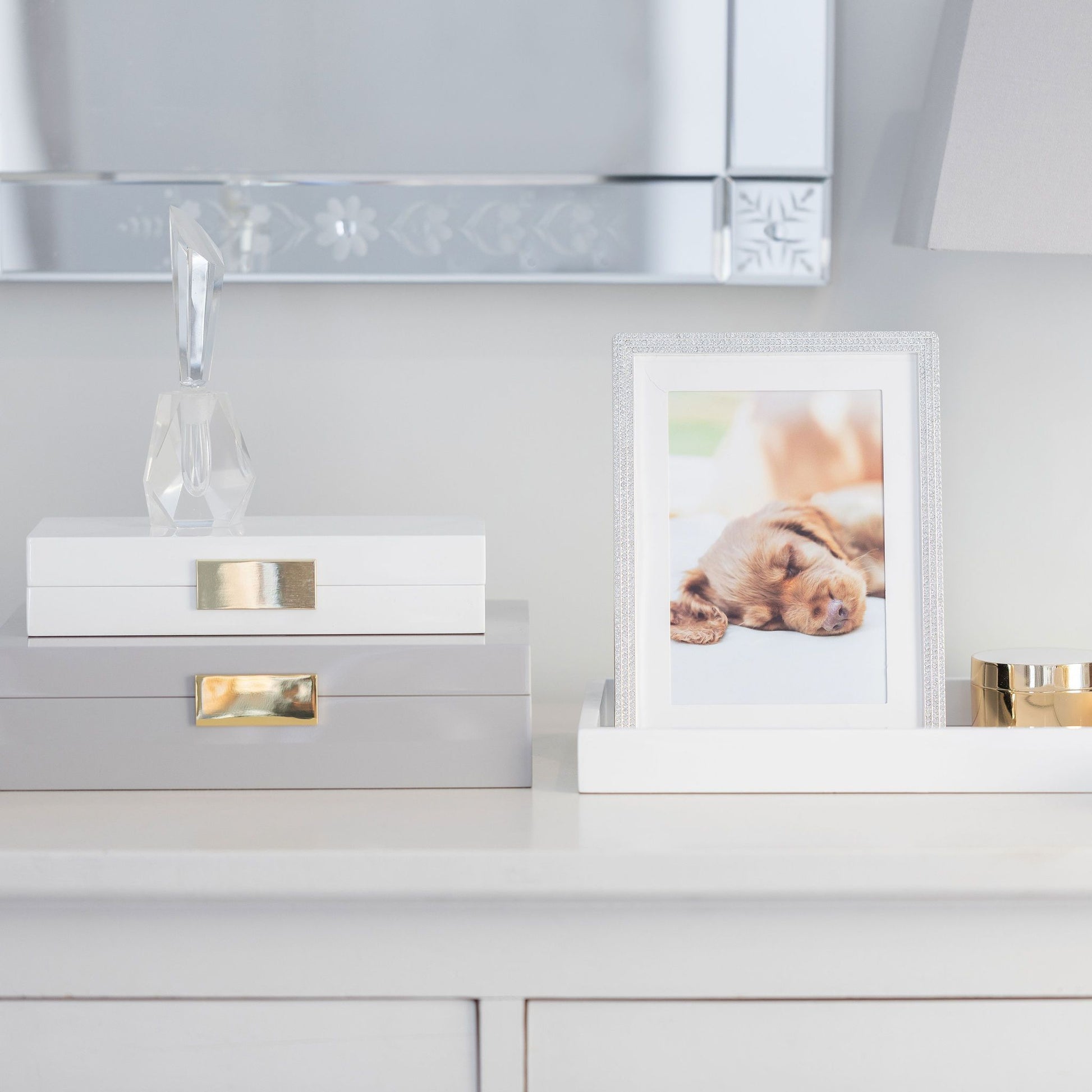 This stunning high gloss Chiffon Grey Box measures approximately 8 x 10.75 inches with an internal size of 24.5cm x 17.5cm.