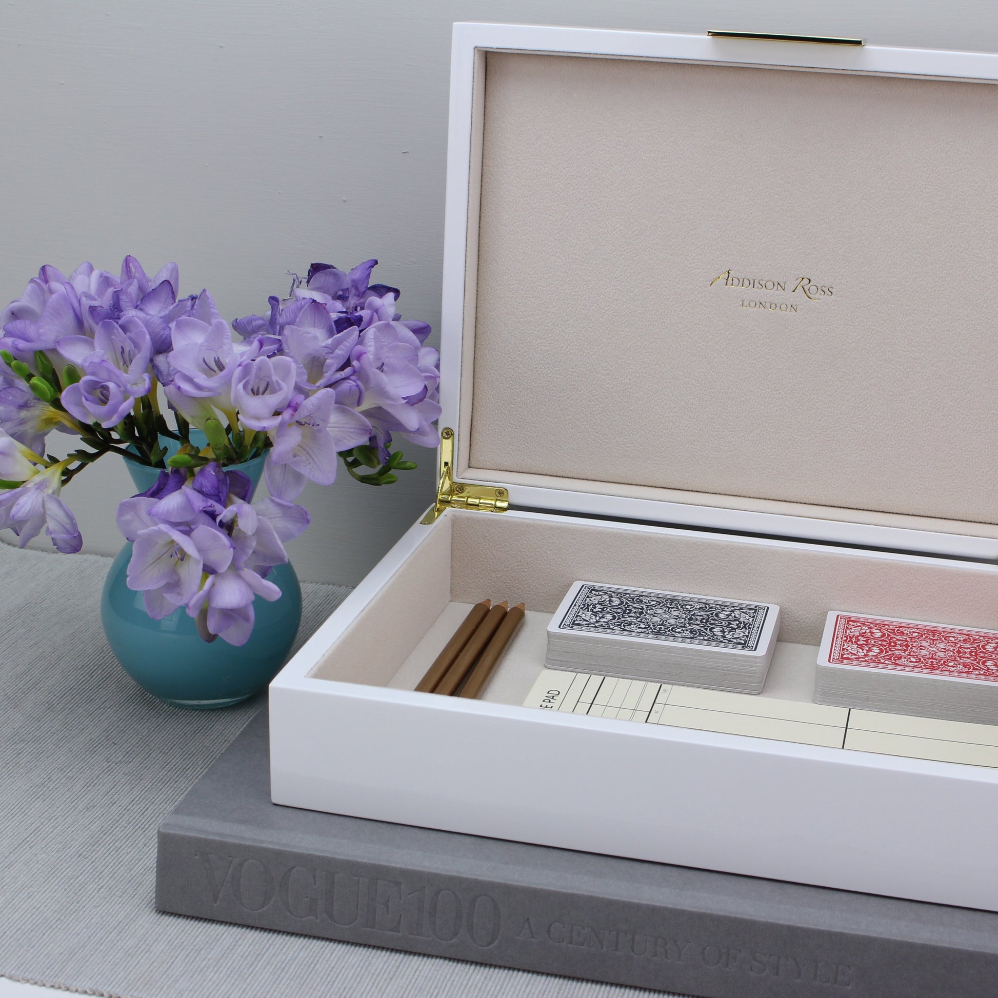 This stunning high gloss White Box measures approximately 8 x 10.75 inches with an internal size of 24.5cm x 17.5 x 5.5cm including depth of the lid.