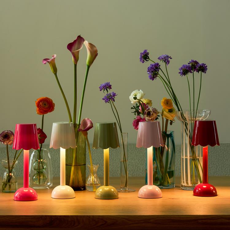 Finished with multiple coats of high-gloss lacquer for a smooth, luxurious finish, this portable lamp is supplied gift-boxed and includes a charging cable for easy recharging. Compact and versatile, the scalloped lamp can be used as a cordless bedside lamp, decorative table lamp, or portable lighting feature throughout the home.