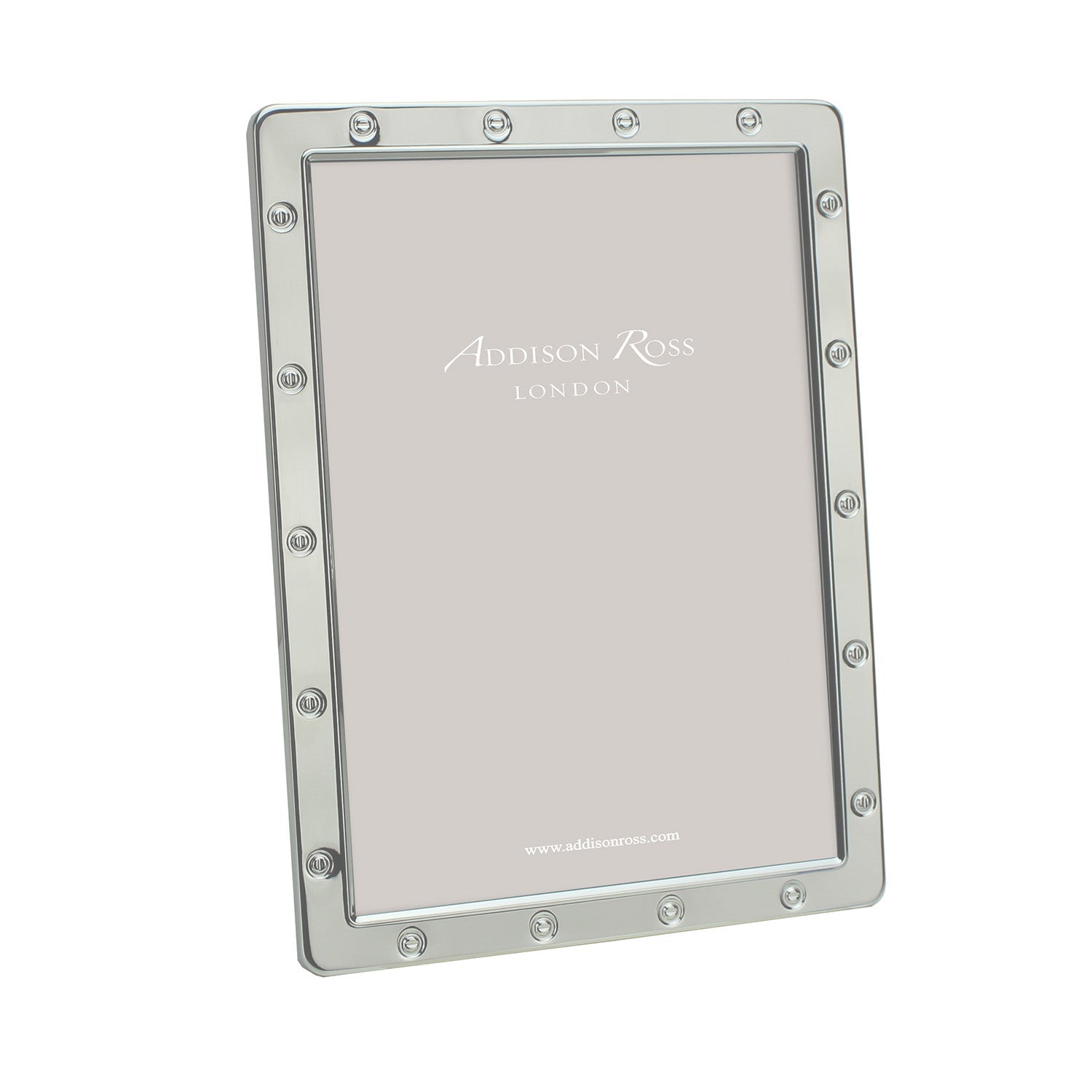 A beautiful silver plated frame with screw detail, curved corners and a beautiful dove grey velvet backstand. Able to stand landscape or portrait and beautifully gift boxed. .